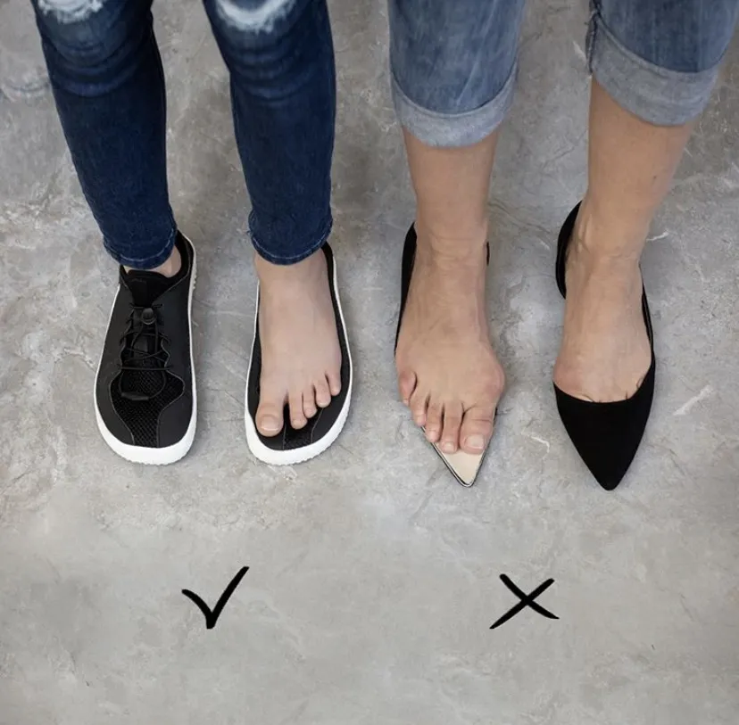 When running in cushioned shoes our portal to the environment is cut off, the delicate process of modulating the muscular activity on each step is affected. These heavily cushioned shoes also often have a toe box that is too small, this inhibits our toes ability to spread out with each step. The ability of the toes to spread out in normal gait is incredibly important as there are small muscles in-between our toes, as our toes spread these muscles send signals to our brain that causes a reflex contraction in our quadricep (thigh muscles). So by compressing the toe box we are reducing down the natural reflexes that provide efficient locomotion.